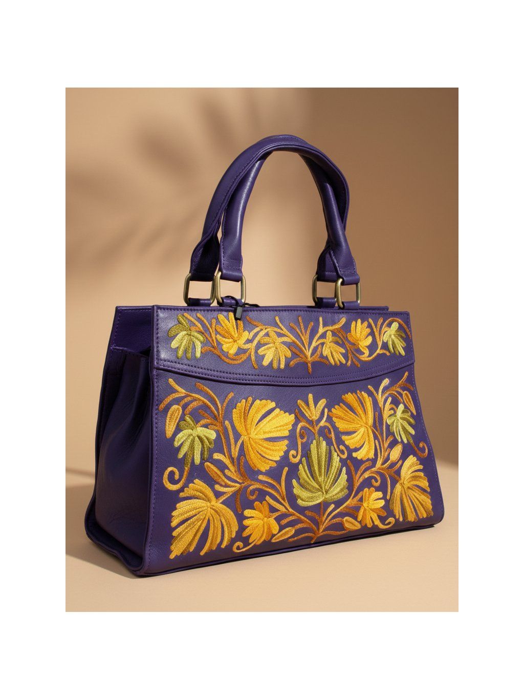 Kabelka je vyrobena z výběrové hovězí kůže, která si zachovává svou přirozenou strukturu. Interiér je podšit 100% čistou bavlnou. Výšivka Aari je prováděna ručně mistry v Kašmíru, což z každého kusu činí originál.